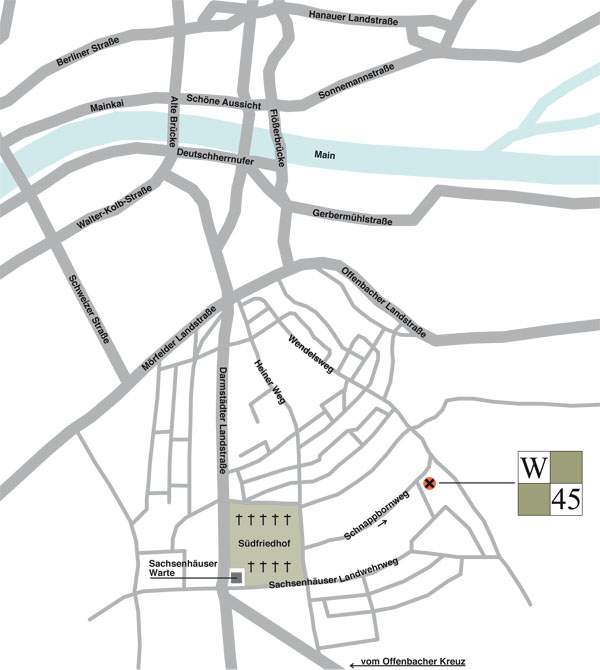 Wenige Kilometer danach an der Abfahrt "Offenbacher Kreuz" den Schildern auf der B3 bzw. Ffm-Sachsenhausen folgen.